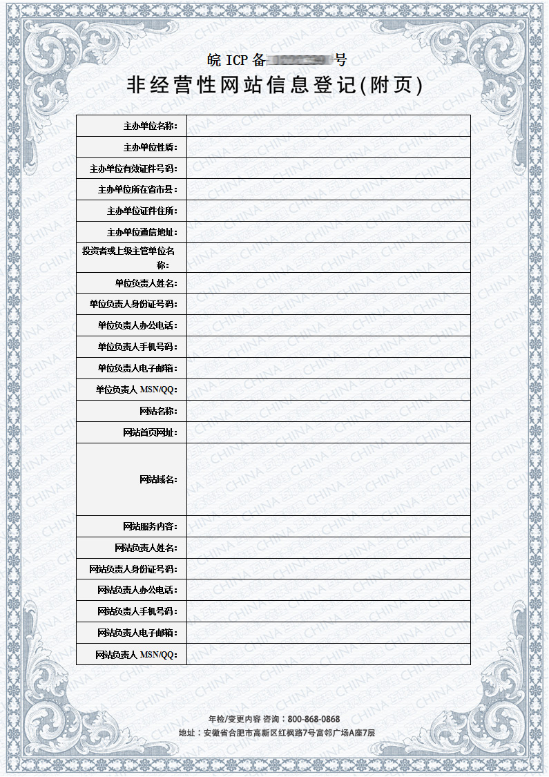 以上含有*为备案或者备案审核必要条件,请网站所有者给予咨询后填写打印。