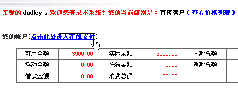 1> 点击此处进入在线支付平台,直接把款划拨到您的会员号下,您马上就拥有足额款项了,然后再进行购物。